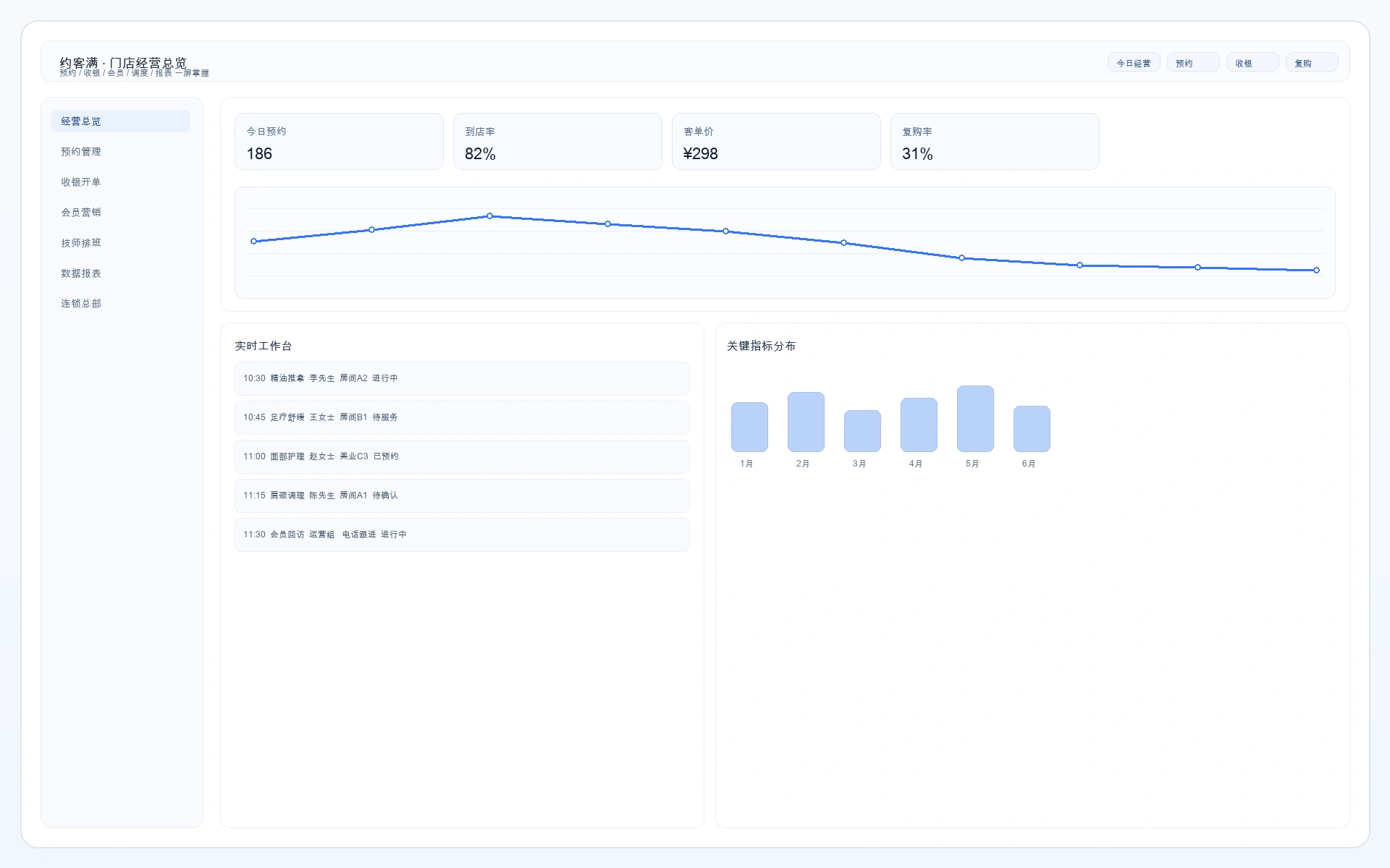 围绕预约到店、收银结算、会员复购建立稳定经营节奏。